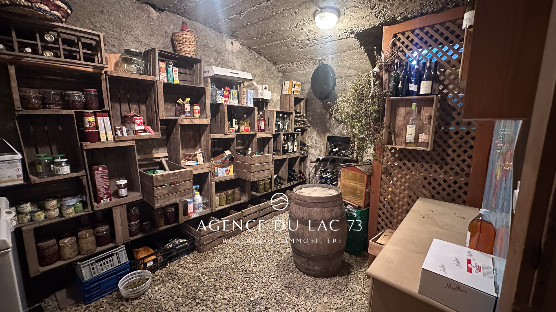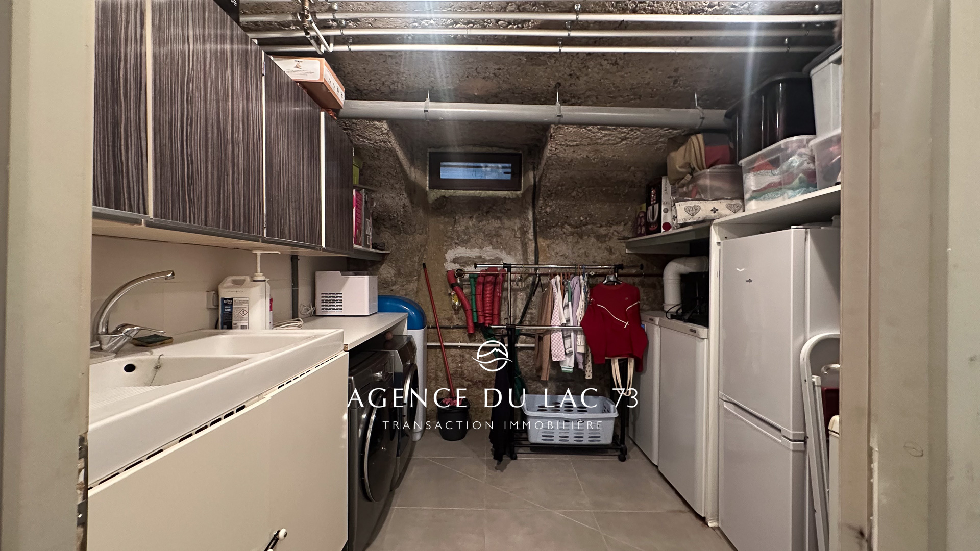Le sous-sol accueille une grande salle de jeux ou cinéma, une buanderie, une cave à vin ainsi que des espaces de rangement.